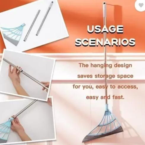 DESCRIPTION: - The magic broom is equipped with an adjustable length stainless steel rod. - The ergonomic shape and expandable handle of this smart manual make it easy to use for a long time without affecting your hands. - Clean windows, bathroom, or kitchen in minutes. - The extra-long handle also allows you to safely reach high windows without the need for stools or step ladders and other hard-to-reach areas. - It can be adjusted from 90cm up to 140cm. The non-slip handle can be hung, which is convenient for storage and saves space! - It is ideal for the living room, kitchen, swimming pool, garage, and bathroom, and can also be used as a squeegee for wiping windows. - Magic sweeper broom Wide Use: The floor squeegee can be used to clean pet fur, hair, liquid, and glass. Wiping, dust removal, hair sweeping, window scraping, oil cleaning, multi-functional use-easy to clean housework!